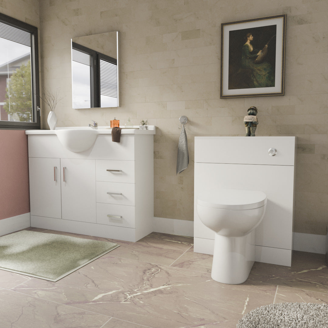 - White Gloss Bathroom Furniture: Add a modern, sleek look to your bathroom with our reflective white gloss bathroom furniture that brightens any space.