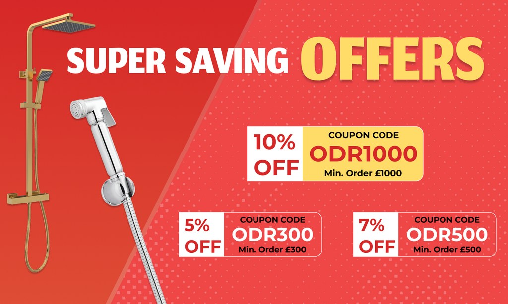 - Save Up to 5%: Get great savings on select bathroom items when you spend £300 or more. Redeem coupon code ODR300 at checkout for a limited-time deal!