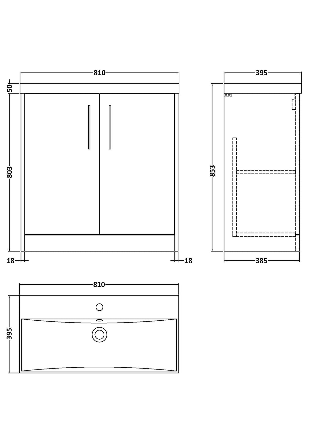 1. 800mm Floor Standing Format: Designed for spacious bathrooms, this large vanity unit with basin offers excellent storage capacity and a balanced, grounded design.