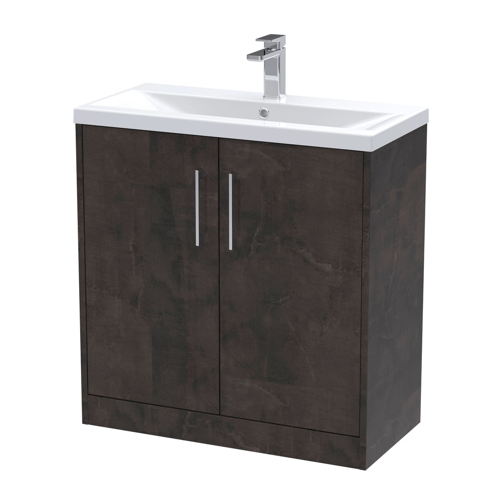 The Hudson Reed Juno Floor Standing 2-Door Vanity Unit with Mid-Edge 1 Tap Hole Basin in Metallic Slate is a spacious and refined sink vanity unit designed for contemporary bathrooms and en-suites. With an extended width of 800mm , this unit offers generous under-basin storage while maintaining a clean, modern look.