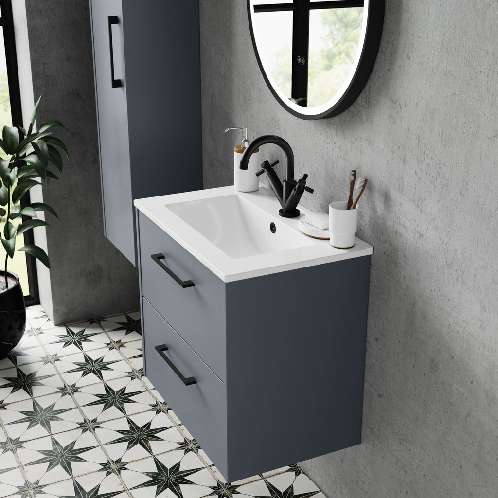Made from moisture-resistant MFC, this larger wall hung vanity unit is crafted for reliable performance in daily bathroom use. Its two drawers glide smoothly on soft-close runners and are styled with modern D-shape handles for a clean, functional finish. The included Minimalist ceramic basin features a slim-edge design in durable vitreous china with a pre-drilled 1 tap hole, ready for monobloc tap installation. Delivered fully assembled, this vanity unit with basin allows for quick and easy fitting.