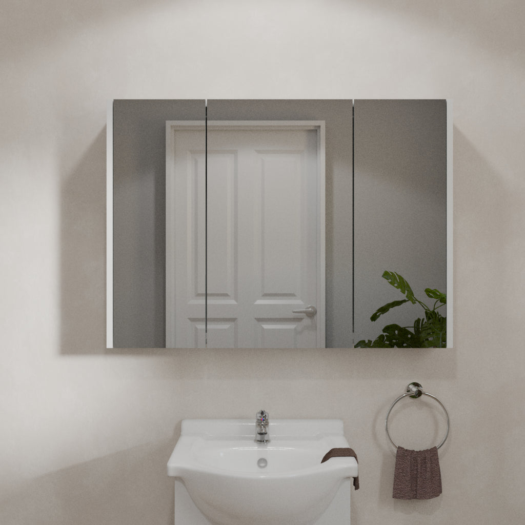 1. TRIPLE MIRRORED DOORS: Three doors provide generous storage space while offering a sleek, modern look for any bathroom.