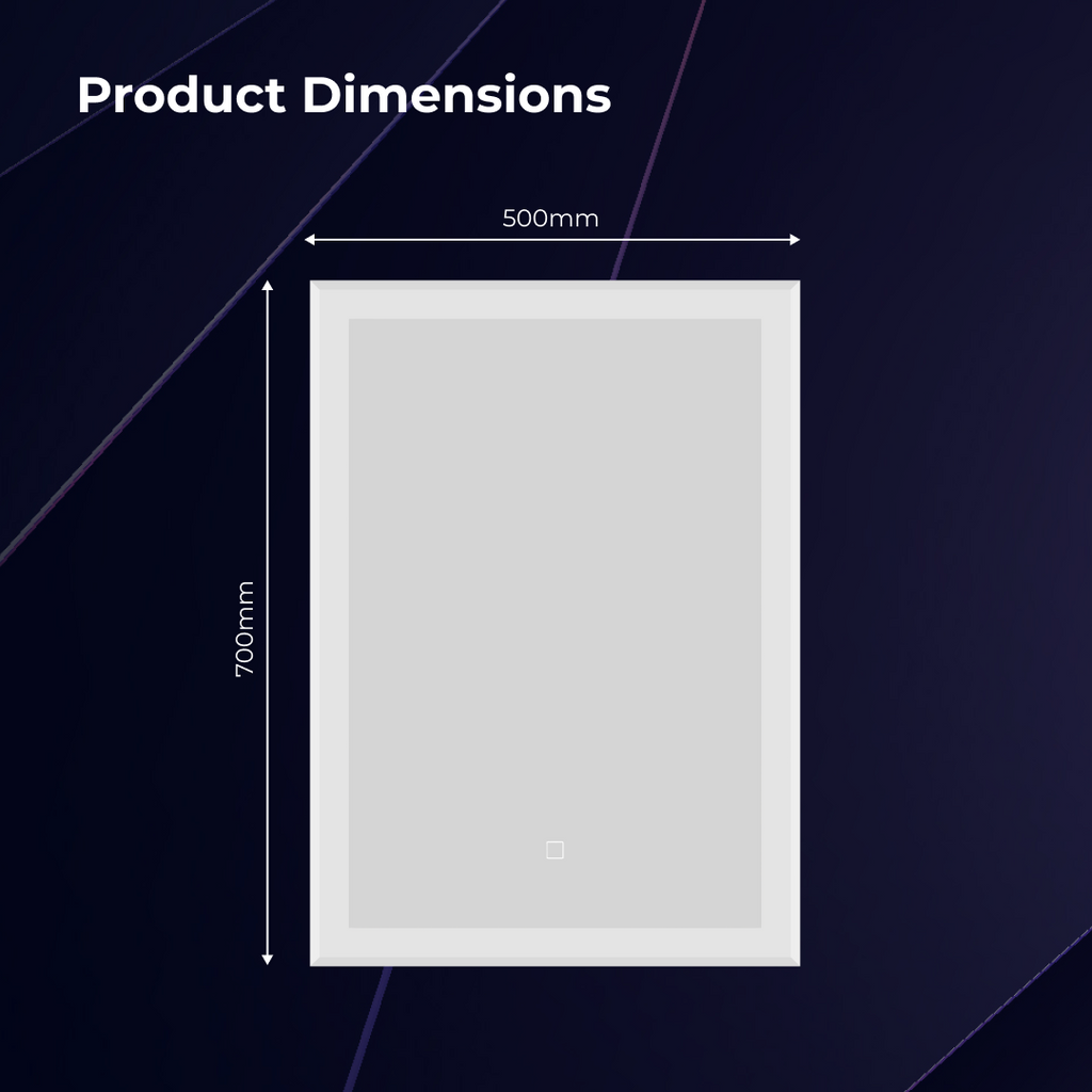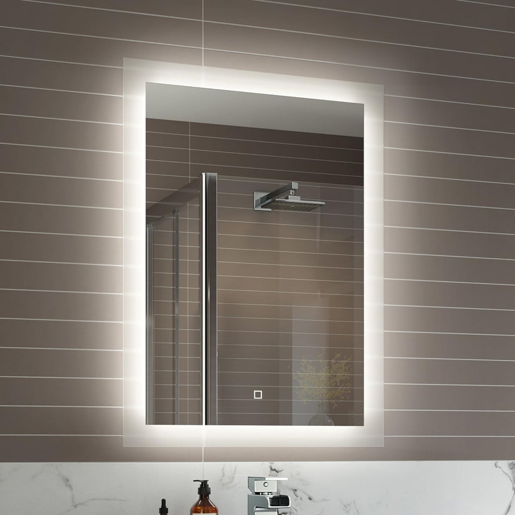 iBathUK Lustre Wall Mounted LED Bathroom Mirror, Modern Pre-Assembled Illuminated Light Up Mirror with 6500K LED Lighting, Demister Pad and Touch Switch Control, Portrait Mounting, 500 x 700mm