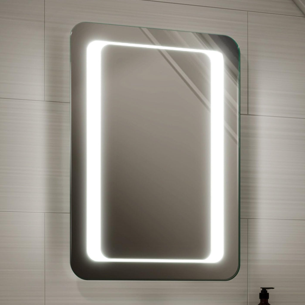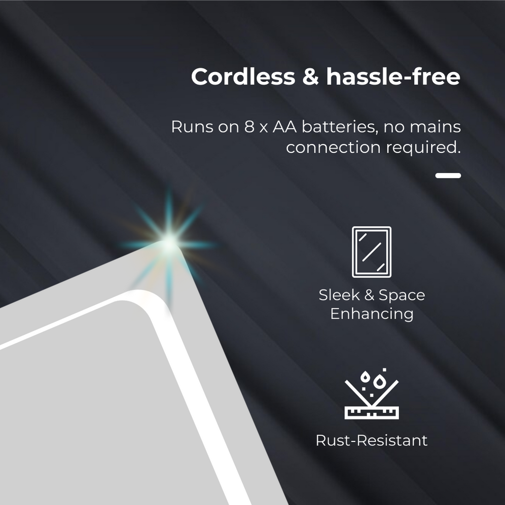 iBathUK Halo Wall Mounted LED Bathroom Mirror, Battery Powered Illuminated Mirror with Cool White 6500K Light, Light Up Mirror with Portrait or Landscape Mount in Modern Aluminium Frame, 500 x 700mm