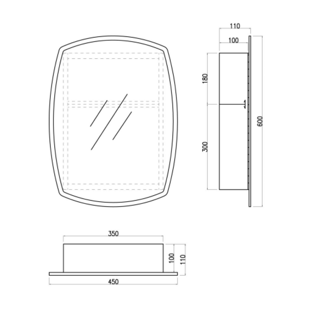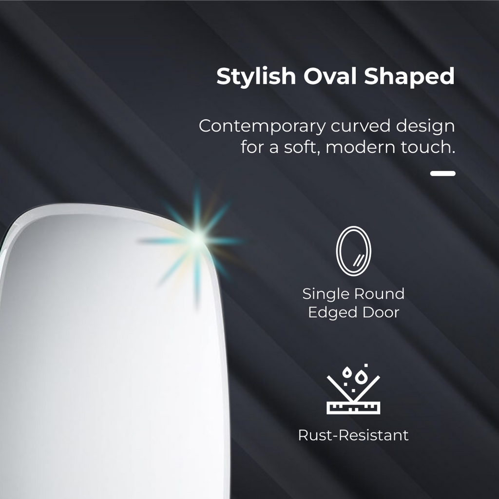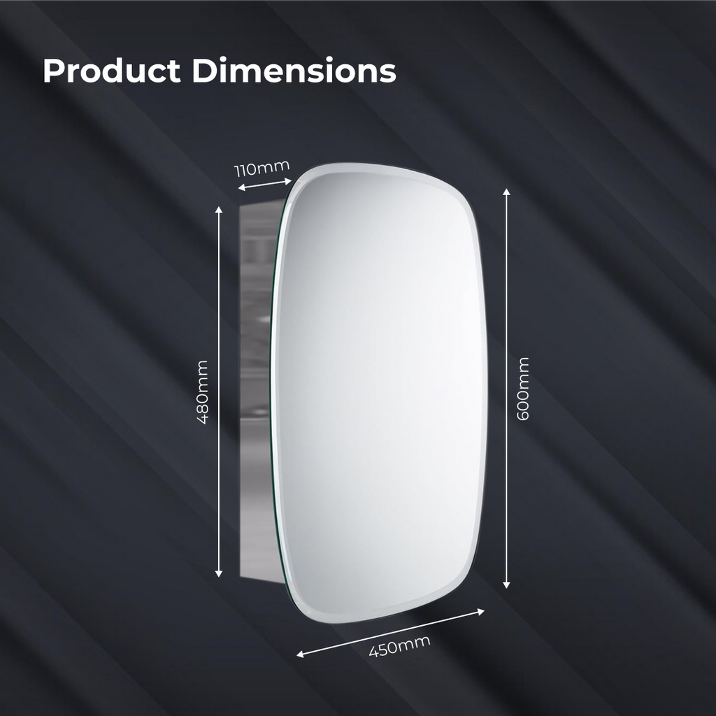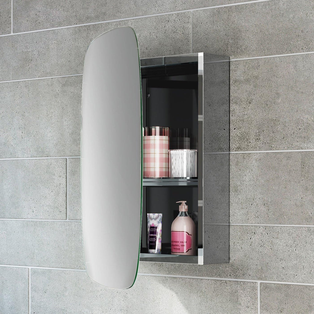 iBathUK Copenhagen Wall Mounted Mirror Cabinet, Single Door Bathroom Mirror Cabinet with Stainless Steel Body and Hinged Door, Built-In Shelf Storage, Portrait Orientation in Silver 600 x 450mm