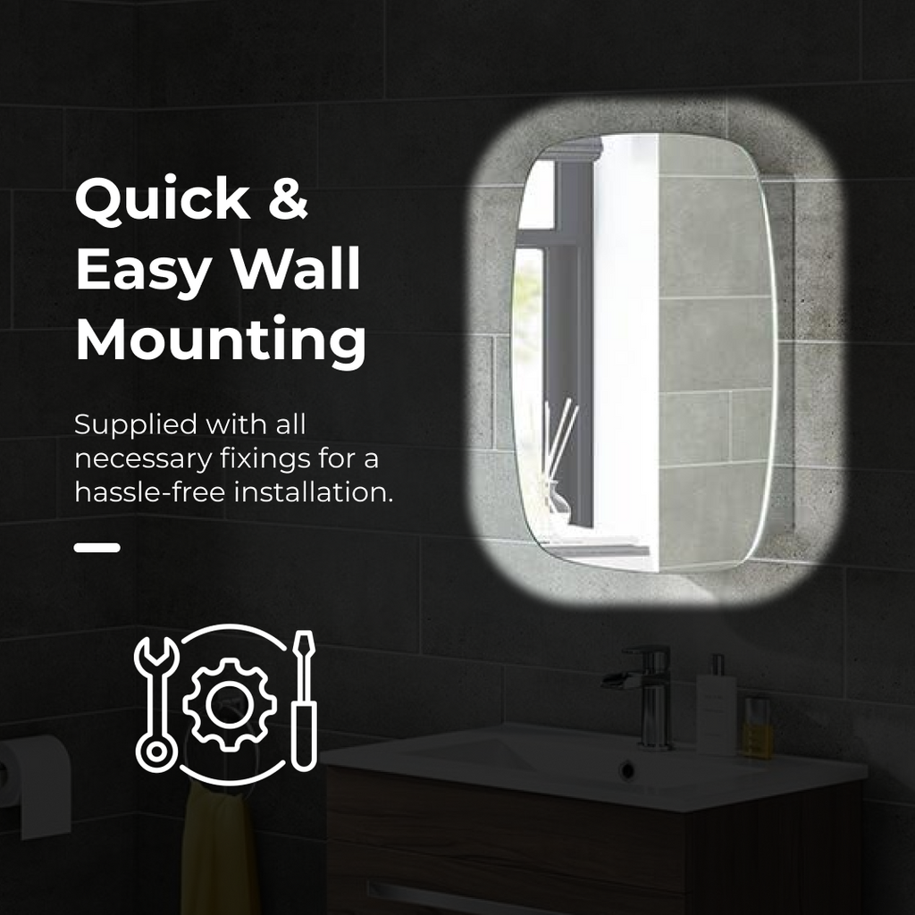 The iBathUK Aurora Wall-Mounted LED Mirror – 700mm x 500mm is the perfect blend of modern style and practical functionality for your bathroom, dressing room, or any space requiring extra illumination. This rectangular mirror features an integrated LED mirror lighting system that offers bright, energy-efficient illumination, which is ideal for daily grooming, makeup application, and other tasks. Its illuminated bathroom mirror design provides precise and even lighting, ensuring optimal visibility while you go about your routine. With a wall mirror design, this mirror adds an elegant touch while enhancing your space with its sleek, minimalist profile. The mirror is battery-powered, making installation quick and effortless, with no need for complex wiring. It runs on 8 x AA batteries, making it a perfect choice for spaces where wiring might be difficult or undesirable. Whether mounted vertically or horizontally, this mirror adapts seamlessly to the layout of your space, offering flexibility for various room configurations. The mirror bathroom with lights design provides excellent lighting and complements modern interiors, blending functionality with aesthetic appeal. Key Features: 1. Cordless & Battery-Powered: Operates on 8 x AA batteries, providing easy, hassle-free installation without needing mains wiring. 2. Energy-Efficient LED Lighting: Bright LEDs provide optimal, even illumination for a superior grooming experience. 3. Slim, Modern Frameless Design: The sleek, minimalist design ensures a contemporary look that seamlessly fits any modern interior. 4. Versatile Mounting Options: It can be mounted vertically or horizontally, providing flexibility for different room layouts. 5. Durable & Reliable Build: Constructed from high-quality materials, backed by a 5-year guarantee for long-lasting use and performance. The iBathUK Wall-Mounted LED Mirror enhances your bathroom's functionality and style. Its cordless, battery-powered system eliminates the need for professional installation, making it ideal for renters or those looking for a quick home upgrade. The energy-efficient LED mirror lighting provides perfect brightness for tasks like makeup application and shaving. Its sleek and modern design adds a touch of elegance to any space. This mirror bathroom with lights is an excellent choice for those seeking a hassle-free and stylish addition to their home. Whether installed in a bathroom, dressing room, or hallway, the vertical mirror design complements various interiors while offering practical, well-lit reflections. The mirror’s energy-saving functionality and contemporary look make it a must-have for modern living.