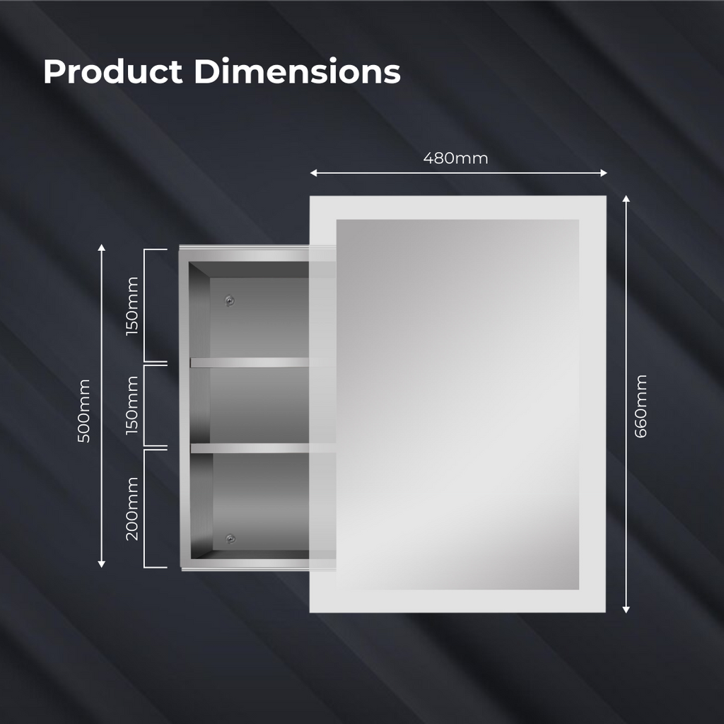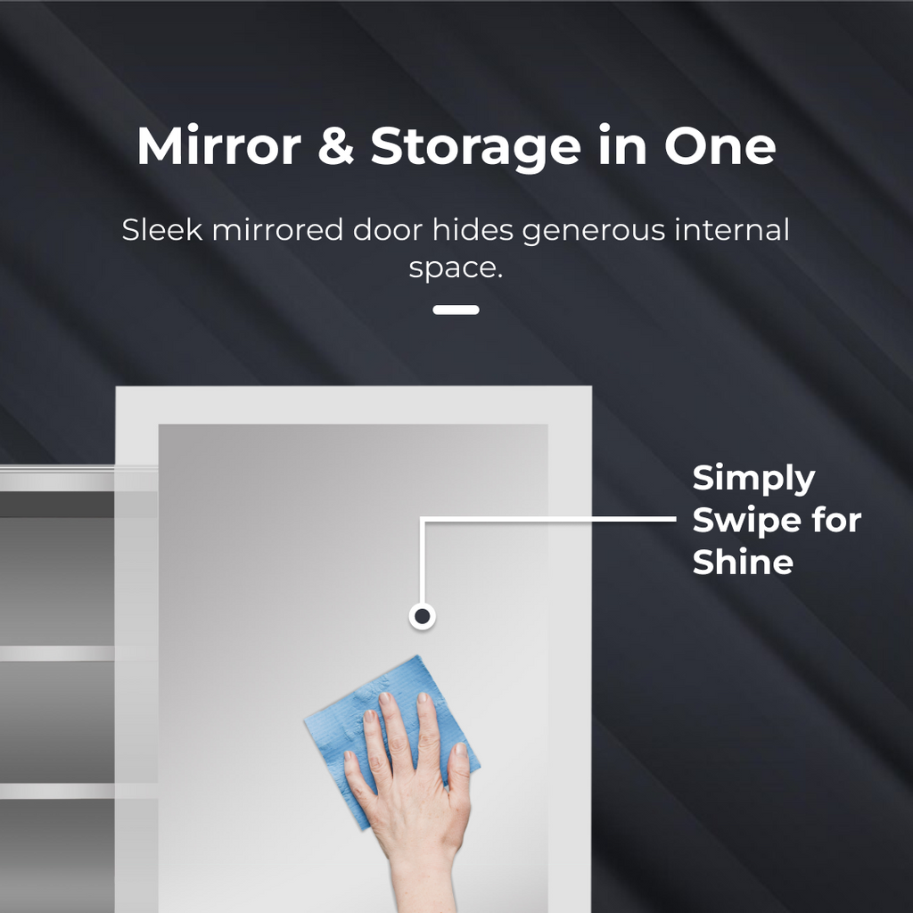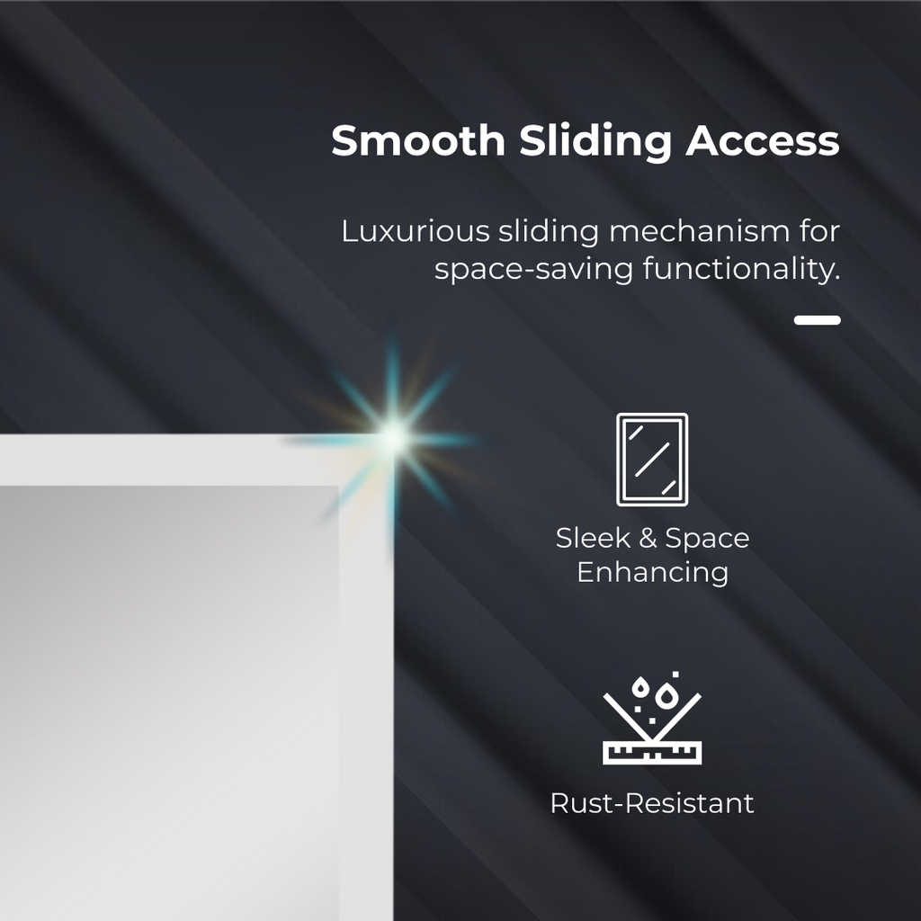 iBathUK Bristol Wall Mounted Mirror Cabinet with Sliding Door, Pre-Assembled Modern Bathroom Plain Mirror Storage Unit Internal Shelf with Portrait Orientation in Silver Finish, 660 x 480mm