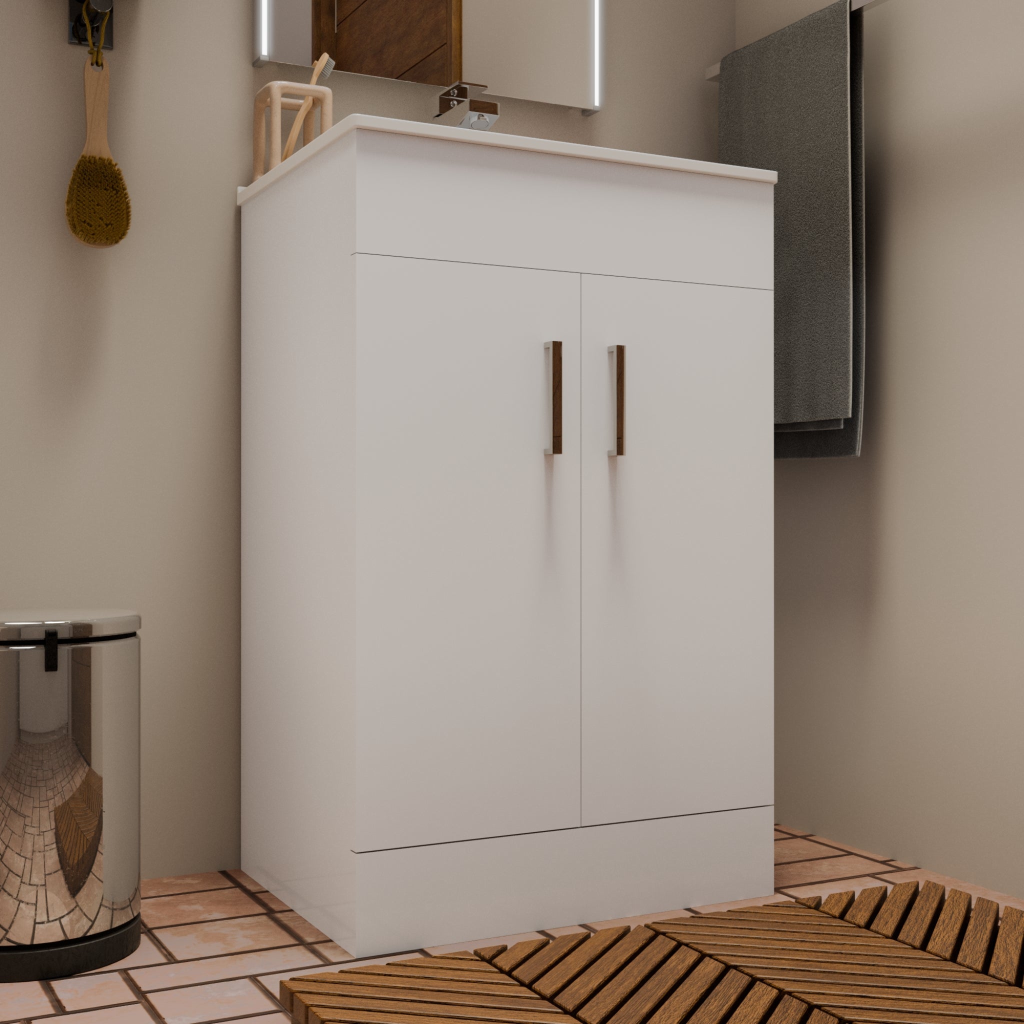 Quartz MDF Gloss White Vanity Unit with Basin