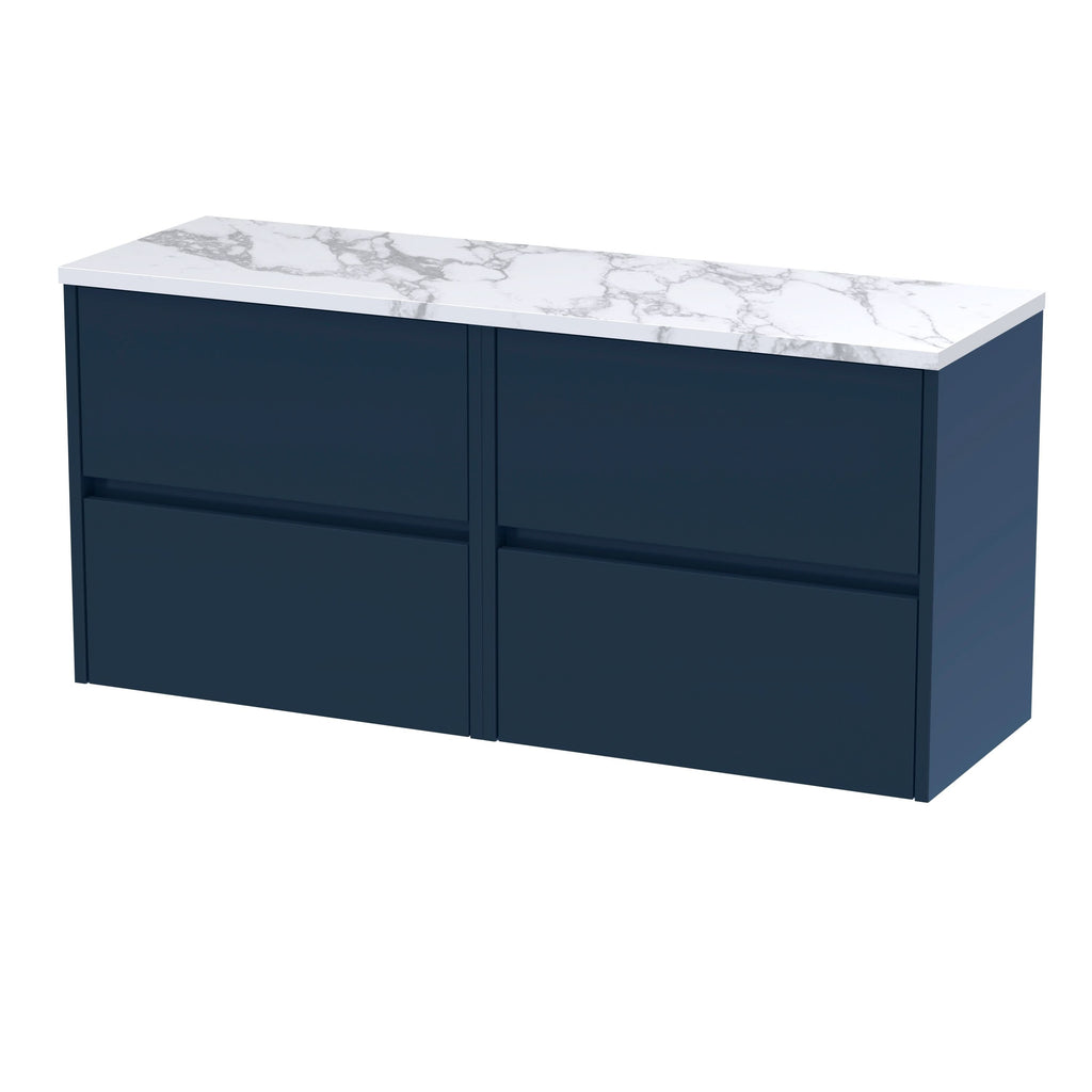 Backed by a 5-year guarantee, the Nuie Havana Wall Hung 4-Drawer Vanity Unit in Midnight Blue with Sparkling Black worktop combines style, practicality, and longevity. Its large size and elegant colour contrast make it perfect for modern bathrooms. With ample storage and smooth soft-close drawers, this vanity unit ensures your space remains tidy and functional while elevating the overall aesthetic.