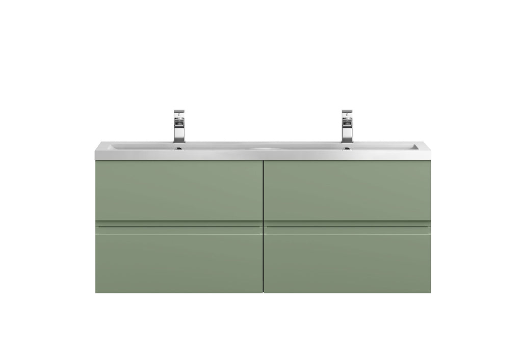 The Hudson Reed Urban 1200mm Satin Green Wall Hung 4-Drawer Vanity Unit with Double Ceramic Basin is designed for style, practicality, and modern living. With its wide double basin and four spacious drawers, it’s perfect for family bathrooms or shared spaces. The wall hung construction saves floor space while making cleaning easier, and the Satin Green painted matt finish adds a sleek, contemporary feel. Built from durable 18mm MFC with rigid cam & wood dowel construction, this vanity unit provides long-lasting reliability.