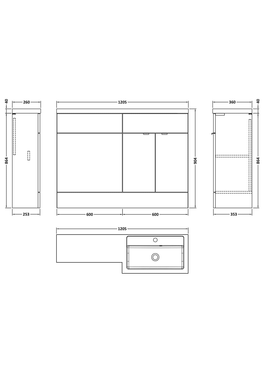 Designed with busy family bathrooms in mind, this full-depth unit provides generous storage to keep toiletries and essentials neatly organised. The right hand semi recessed basin and WC layout ensures a balanced, practical design, while the high-quality materials deliver durability and long-lasting appeal.