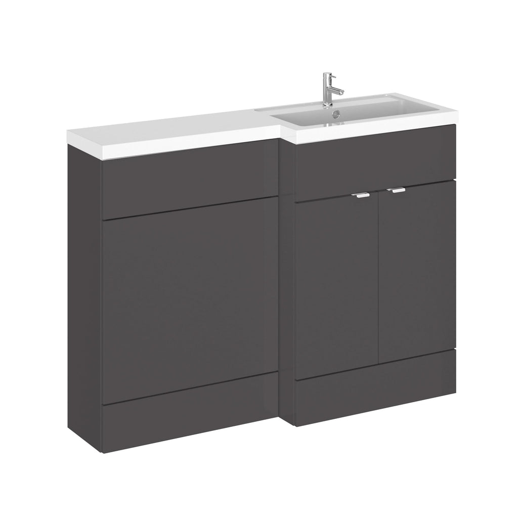 The Hudson Reed Fusion Floor Standing 2 Door Vanity Basin & WC Right Hand Combination, 1200mm in Gloss Grey combines sleek, modern design with practical functionality, making it ideal for contemporary family bathrooms. The high gloss grey finish adds a sophisticated, contemporary touch and creates a stylish focal point while coordinating seamlessly with other fitted furniture, ensuring this sink vanity unit enhances your bathroom furniture storage.