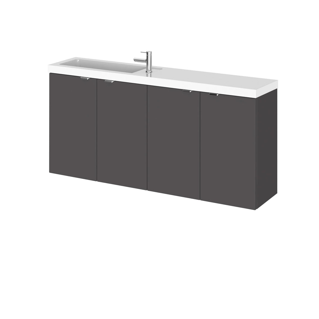 The Hudson Reed Fusion Wall Hung Vanity Unit & Basin Compact in Gloss Grey, 1200mm is a stylish and practical bathroom storage unit, combining a wall-hung vanity unit with a durable polymarble basin for a sleek, contemporary finish. Perfect for modern bathrooms, this bathroom furniture storage solution keeps your bathroom sink vanity unit essentials organised while maximising floor space for a cleaner, more open look.