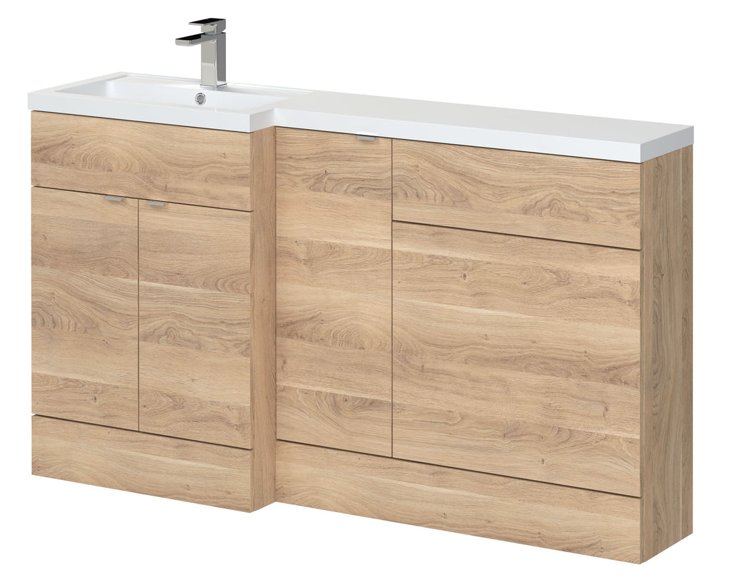 Hudson Reed Fusion Floor Standing Left Hand Combination, Stylish Bathroom Storage Unit, Bleached Oak, 1500mm