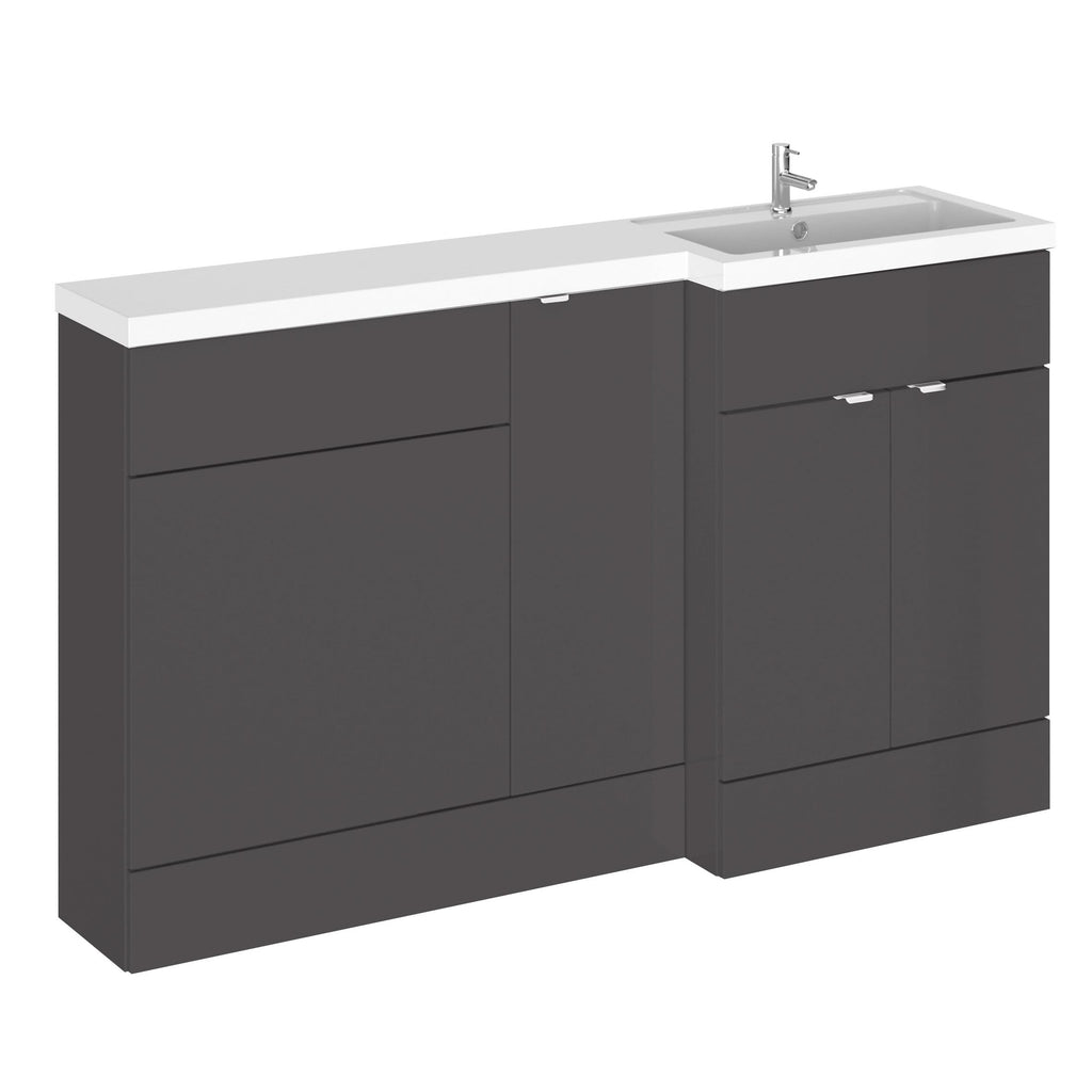 Hudson Reed Fusion Floor Standing 3 Door Vanity Basin & WC Right Hand Combination, Bathroom Storage Unit, Gloss Grey, 1500mm