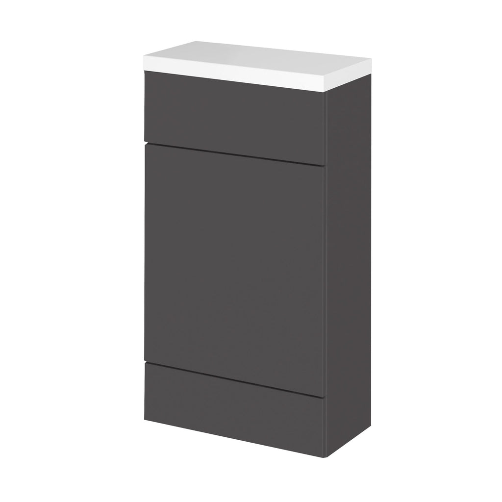 Backed by a 5-year guarantee, the Hudson Reed Fusion Floor Standing WC Unit with Polymarble Top Compact in Gloss Grey, 500mm is a dependable and stylish choice for contemporary bathrooms, providing both practical storage and elegance in one complete modern vanity unit.