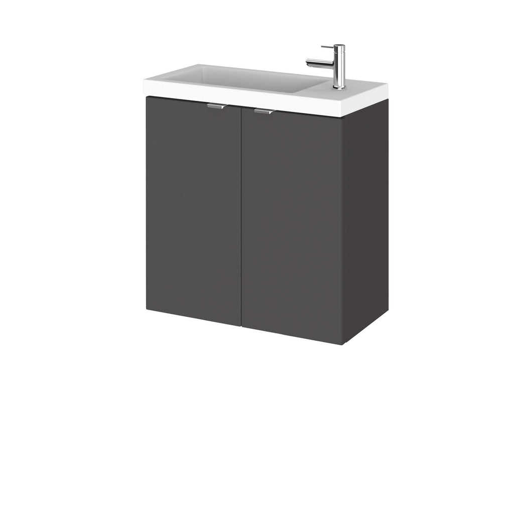 The Hudson Reed Fusion Wall Hung 2 Door Vanity Unit & Polymarble Basin, 500mm in Gloss Grey combines modern style with practical storage. Its compact design, durable construction, and wall-hung format make it an excellent choice for small bathrooms and en-suites that demand both function and elegance.