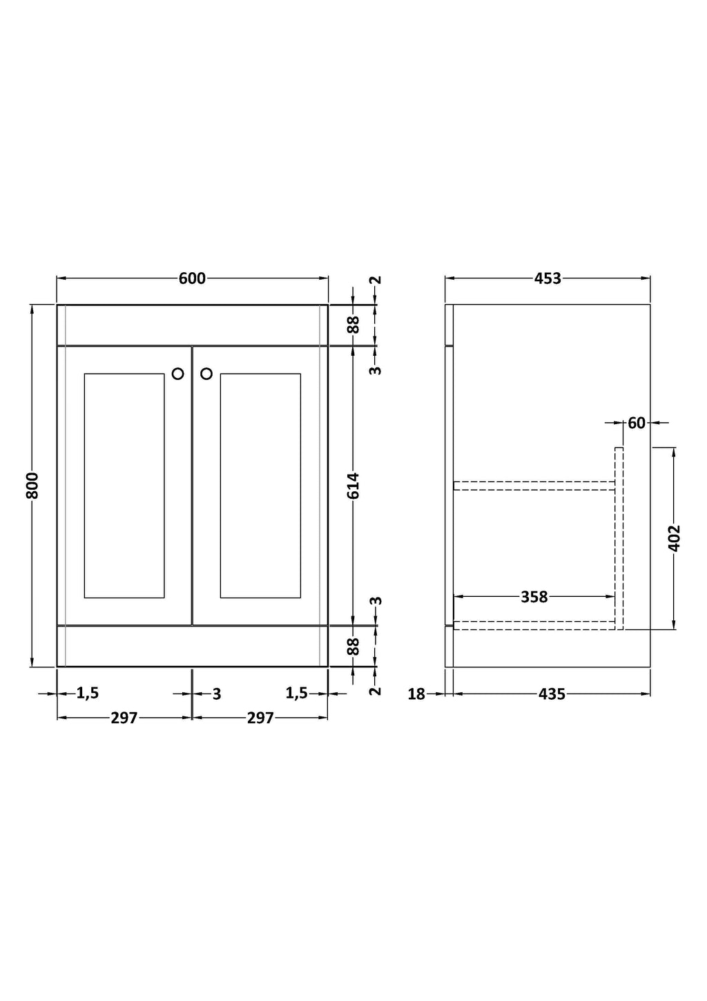 Made from moisture-resistant MDF with a painted matt surface, this bathroom vanity unit is designed for long-term durability and daily functionality. The twin doors open to reveal ample interior storage and are fitted with 95-degree clip-on soft close hinges that minimise noise and reduce wear over time. Traditional chrome knob handles complete the look with a timeless touch. This unit coordinates effortlessly with matching WC units from the Classique range, allowing for a consistent and polished bathroom layout.