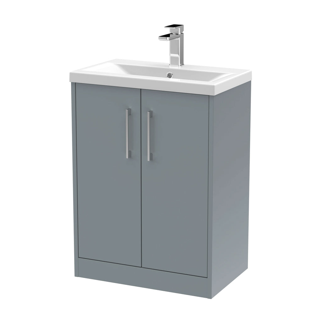 The Hudson Reed Juno Floor Standing 2-Door Vanity Unit with Mid-Edge 1 Tap Hole Basin in Coastal Grey is a practical and stylish sink vanity unit ideal for contemporary bathroom settings. With a wider 600mm profile, it offers additional surface area and storage while retaining a sleek, compact footprint suitable for en-suites, family bathrooms, and guest spaces. The soft matt finish in Coastal Grey adds a calming presence, bringing understated elegance to both minimalist and traditional interiors.