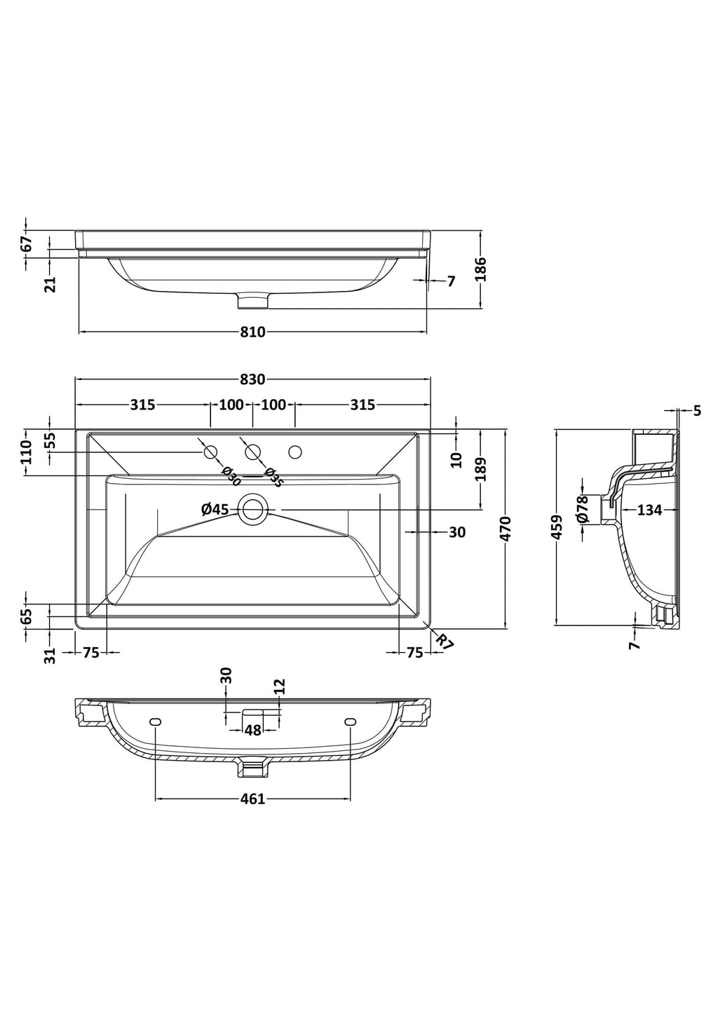 3. Three Tap Hole Basin: Pre-drilled with three tap holes, ideal for pairing with traditional three-piece tap sets. This feature enhances authenticity in period-style bathroom designs.