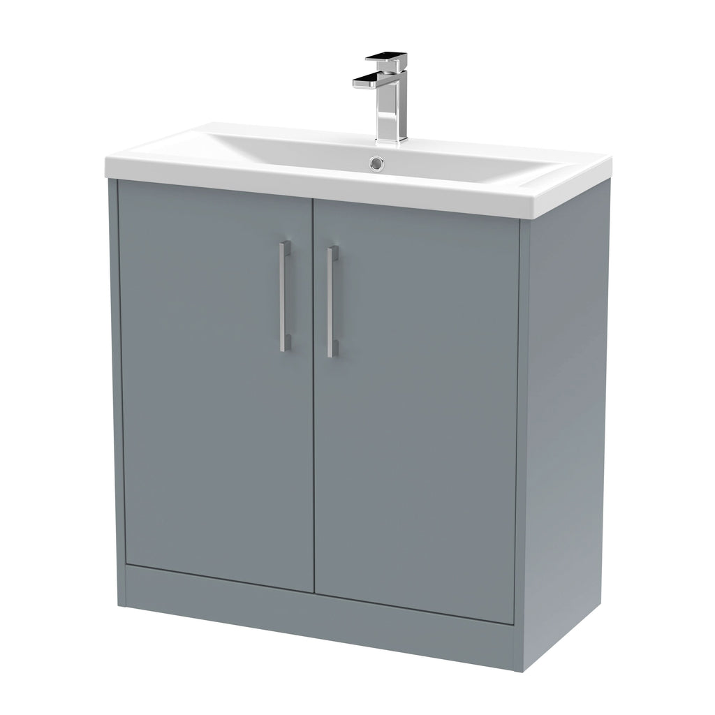 Hudson Reed Juno Floor Standing 2-Door Vanity & Mid-Edge 1 Tap Hole Basin, Timeless Sink Vanity Unit, Coastal Grey, 800mm