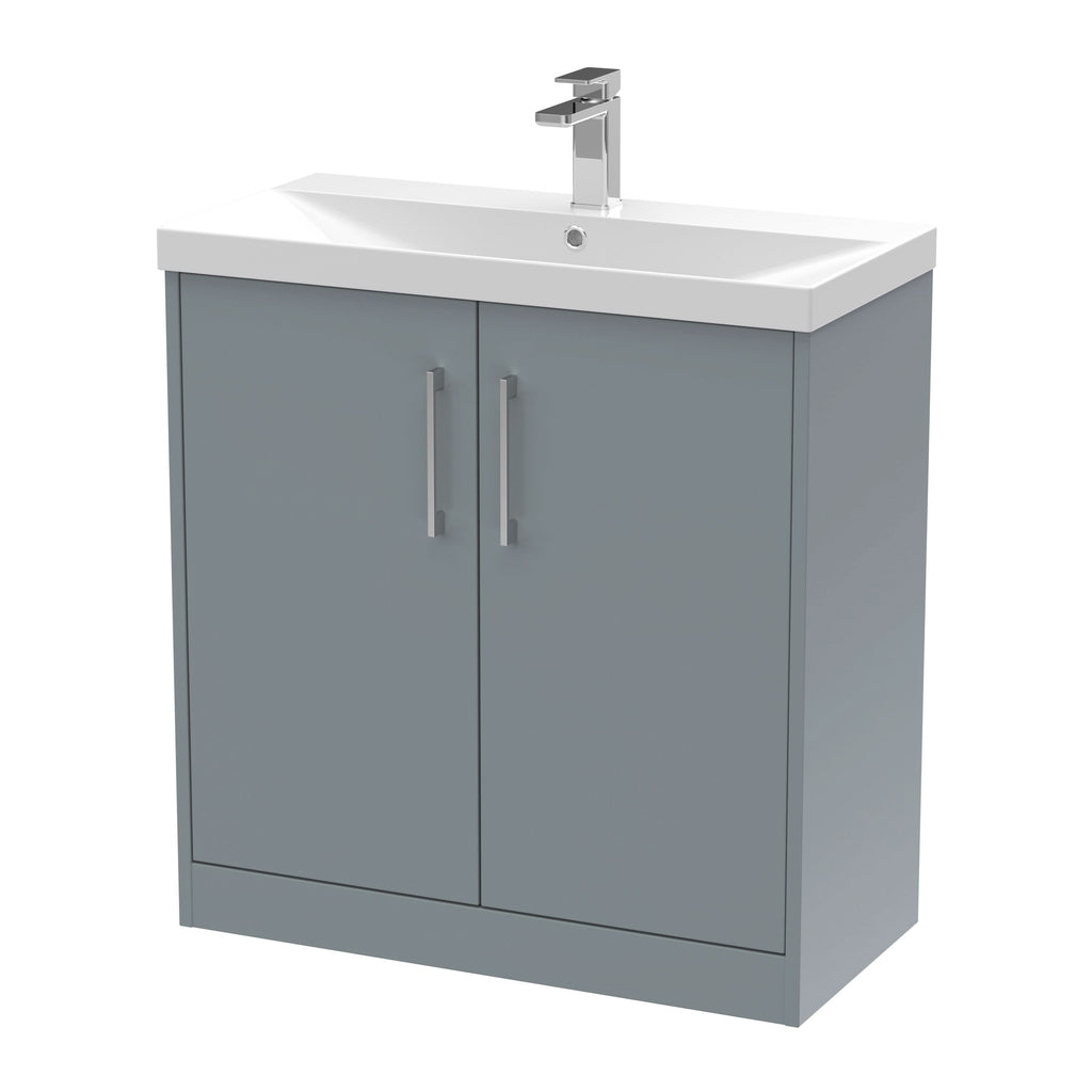 Hudson Reed Juno Floor Standing 2-Door Vanity & Thin-Edge 1 Tap Hole Basin, Timeless Sink Vanity Unit, Coastal Grey, 800mm