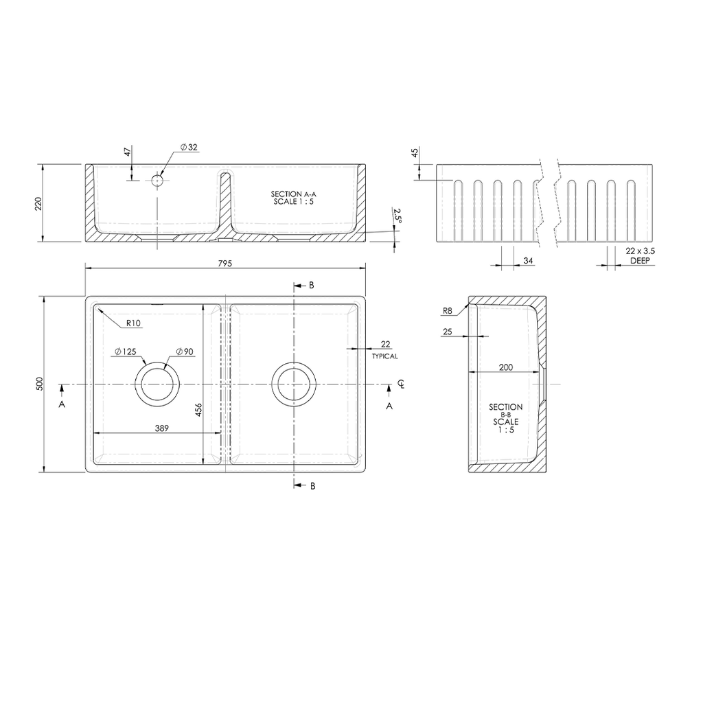 2. Stepped Weir Advantage: Enhances drainage and functionality, ensuring smooth water flow while complementing the sink’s classic design.