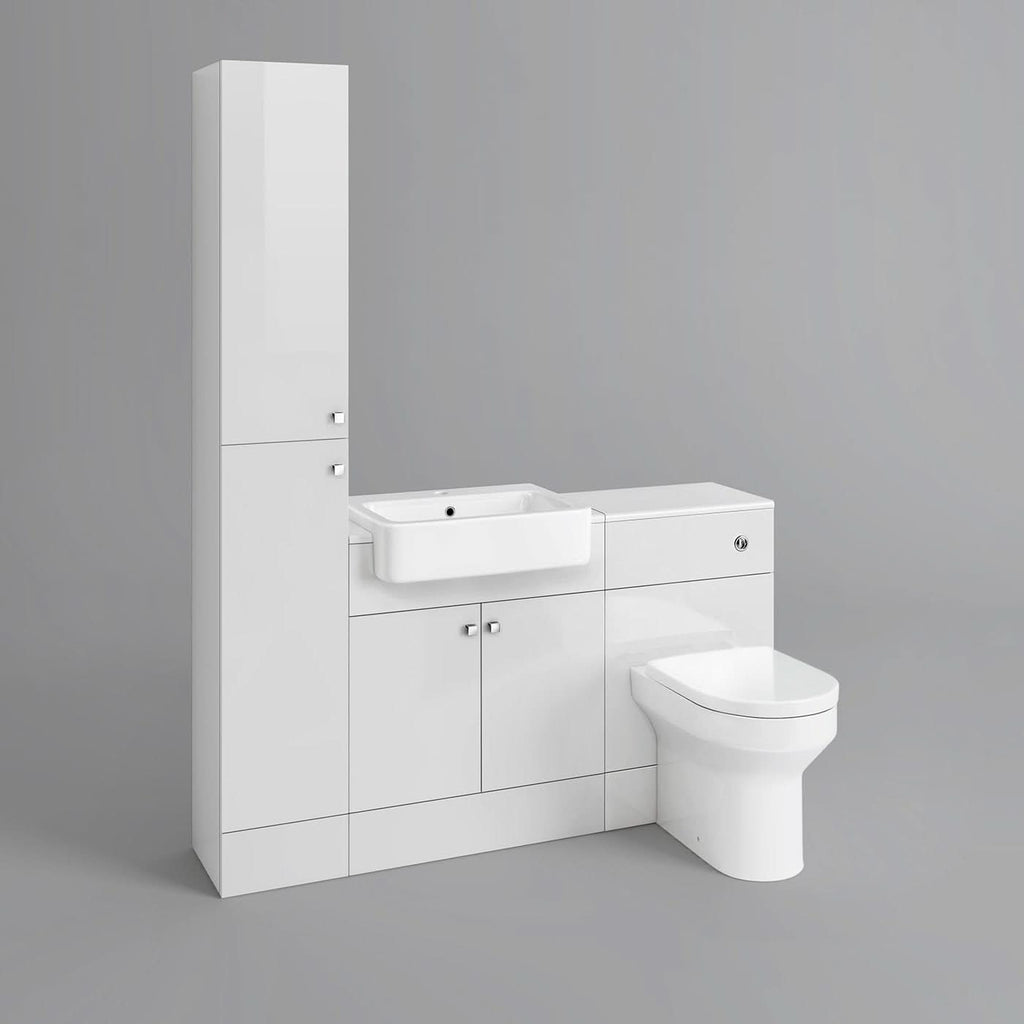 iBathUK Harper Combined Vanity Unit Bathroom Suite, Basin Cabinet with Back to Wall Toilet WC & Pan, Modern Vanity Unit with Basin Gloss White