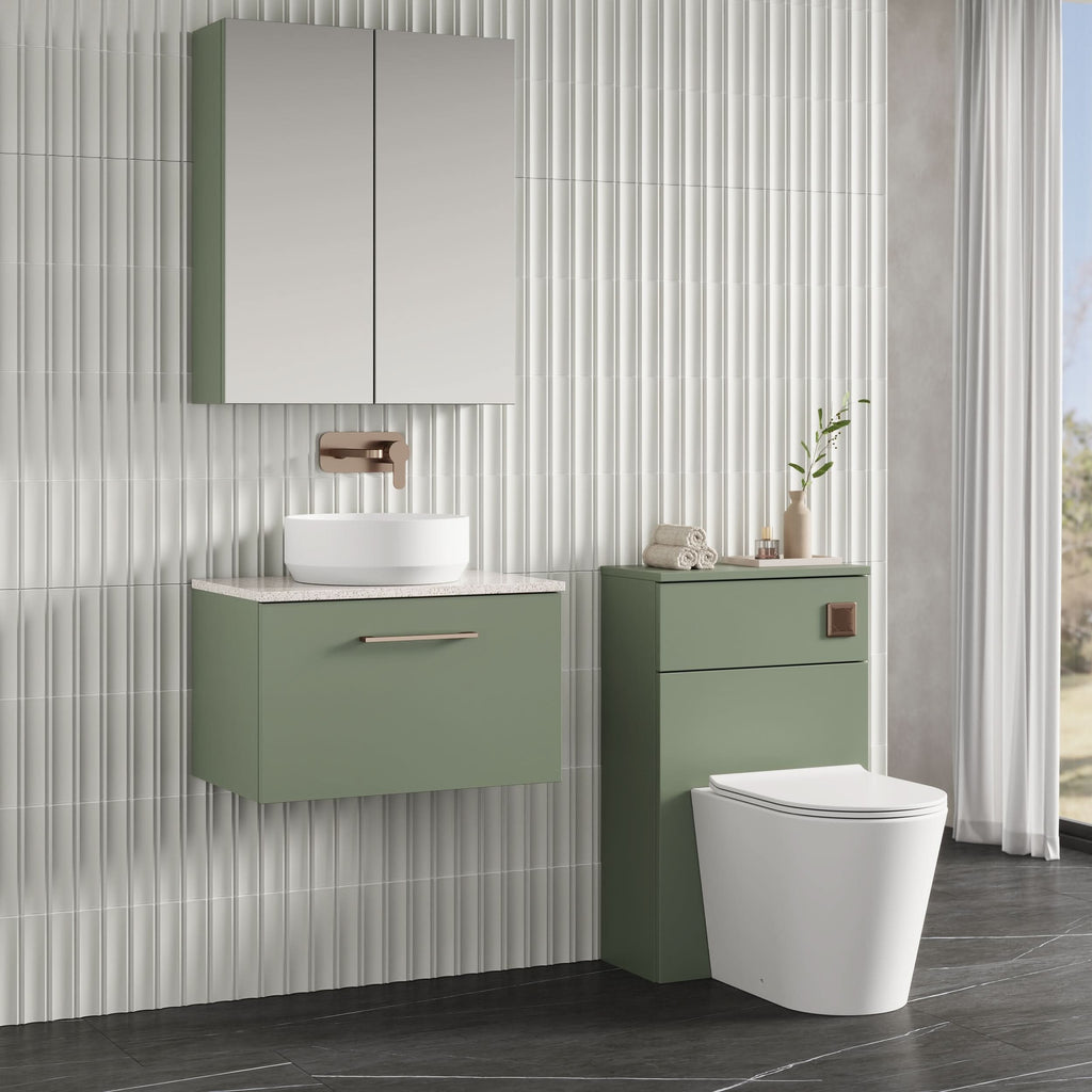 - Supplied with laminate worktop, for use with vessel basins (sold separately)