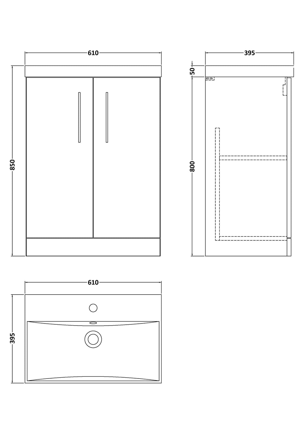 Nuie Arno 2 Door Floorstanding Vanity Unit With Basin-3 600mm Wide