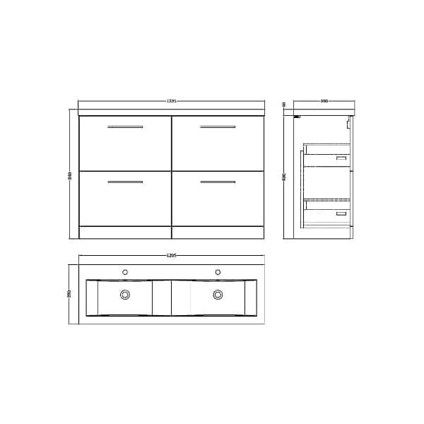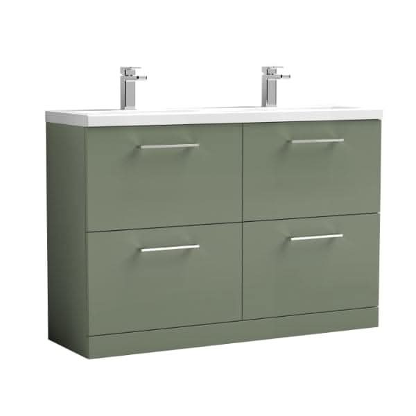 Nuie Arno 4 Drawer Floorstanding Vanity Unit With Double Ceramic Basin 1200mm Wide