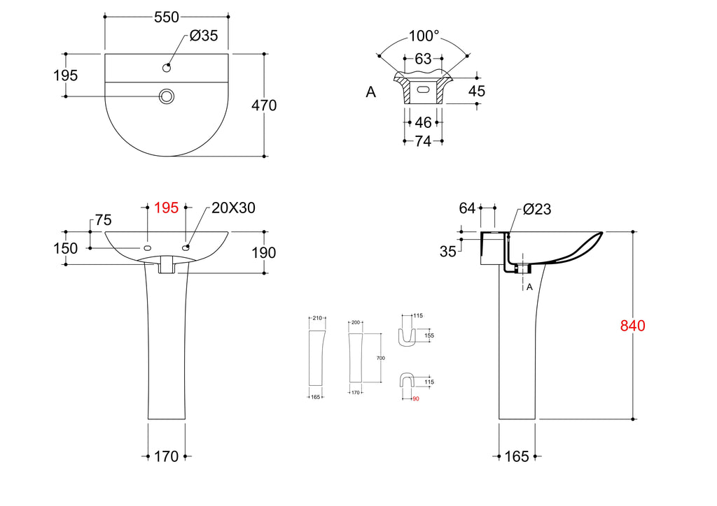 2. Basin Wall Installation – Pedestal design conceals plumbing for a neat, uncluttered appearance against the wall.
